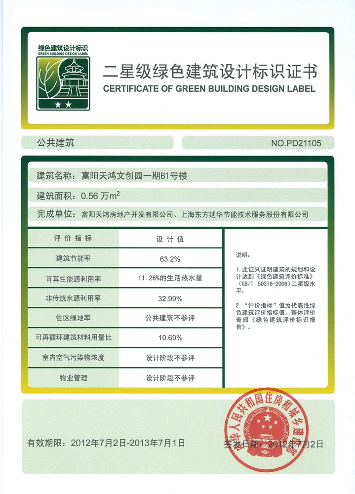 东方延华项目获中国绿色建筑设计标识证书 |