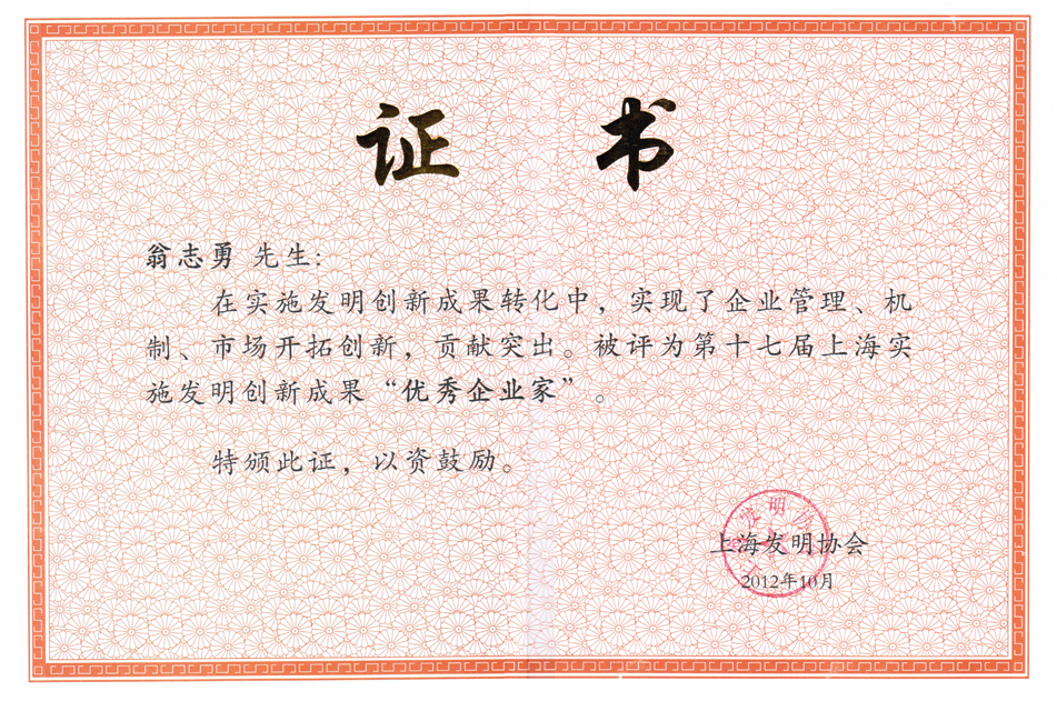 延华集团总裁助理、武汉智城总经理翁志勇荣获“第十七届上海实施发明创新成果优秀企业家”称号 |