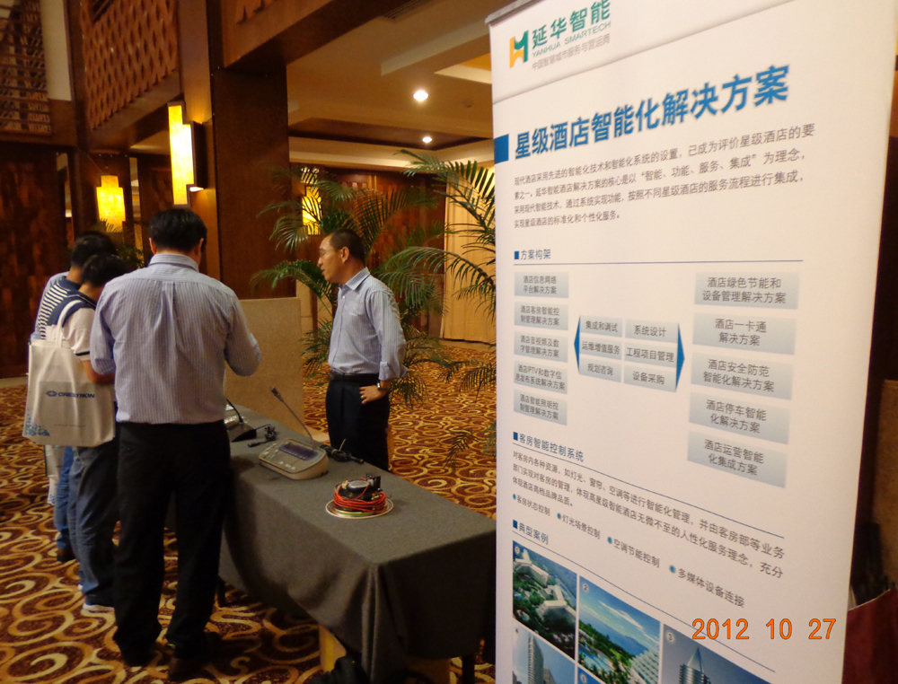 10月27日,为期两天的三亚市旅游协会工程分会2012年年会在拥有丰富旅游资源的海南省保亭县隆重举行,三亚万达希尔顿康莱德酒店、三亚半山半岛洲际度假酒店、三亚喜来登度假酒店等四十余家国际知名酒店的工程负责人参加会议。凭借在星级酒店领域拥有领先解决方案和众多成功案例,延华集团应邀参会。