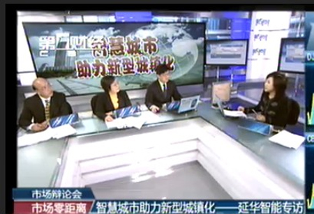 1月10日下午1点半,延华应邀参加第一财经《市场零距离》直播节目,围绕智慧城市助力新型城镇化展开深入探讨。延华集团总经理顾燕芳,集团副总经理、咨询事业部总经理、总工程师王东伟接受采访。