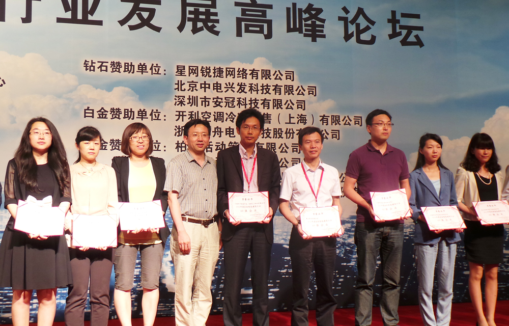 最后的颁奖环节掀起了本次高峰论坛的高潮。为在智能建筑行业培育一批具有核心竞争力的品牌企业、表彰行业内的精英骨干、提高行业优质企业的知名度和市场占有率,协会自去年11月份面向全行业的企业开展了2012年度行业评选工作,经过严谨全面、公正公开的综合评定,行业最具含金量的“全国智能建筑行业十大品牌企业”、“全国智能建筑行业60强企业”两项企业大奖最终揭晓,延华集团凭借在业内领先的品牌形象和强劲综合实力荣入榜单且位列前茅。金震副总和集团副总、商务总监施学群作为代表上台领取证书及奖状牌匾。