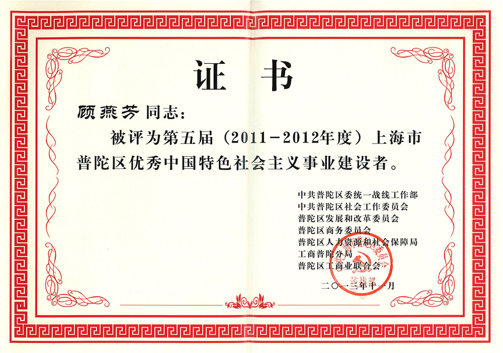文章标题:延华集团总经理、党委书记顾燕芳荣获“第五届上海市普陀区优秀中国特色社会主义建设者”称号