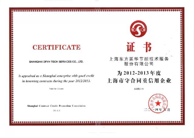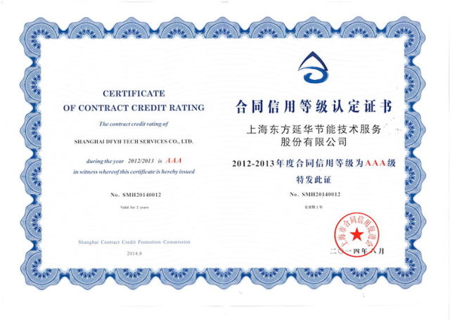 近日,上海市企业合同信用促进会颁布了2012-2013年度上海市企业合同信用等级和“守合同重信用”企业评定结果。东方延华获评中国企业信用评定最高等级AAA级合同信用等级,并被认定为上海市守合同重信用企业。