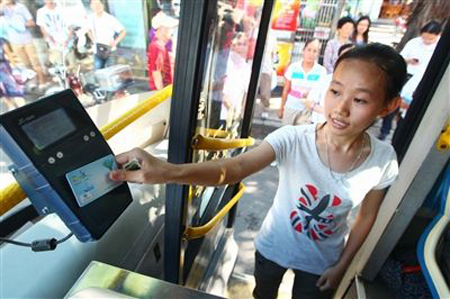 ![]() ![]() ![]() 【2013年6月19日,三亚“城市一卡通”IC卡率先在新国线、安达、广达等公交公司的600辆营运公交车上投入试运营】