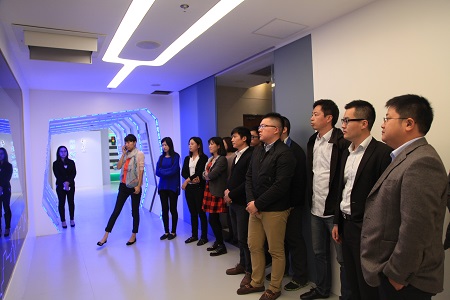 ![]() 合影留念 本次互访活动由参观延华集团多媒体技术青年突击队的又一杰作——延华智能智慧城市体验中心拉开帷幕。青年突击队代表们走进“智慧之门”、穿过“时光隧道”,近距离感受了延华人的风采与智慧,进一步了解了延华的发展历程,以及在智慧节能、智慧医疗、智慧养老、智慧交通、智慧家居与智慧酒店、智能建筑等贴近城市民生的智慧城市业务现状。