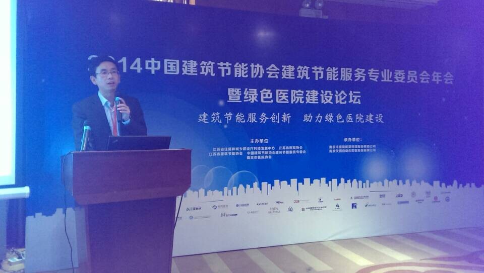 11月5日,正值“江苏省第七届绿色建筑国际论坛暨江苏国际绿色建筑展览会”召开之际,“2014年中国建筑节能协会建筑节能服务专业委员会年会暨绿色医院研讨会”于南京举行。《建筑合同能源管理合同示范文本》由中国建筑节能协会和住建部科技发展促进中心联合在会上正式对行业发布。同时,延华集团执行总裁、东方延华总经理于兵受邀参加年会,并结合年会主题“绿色智慧医院”作主题演讲。