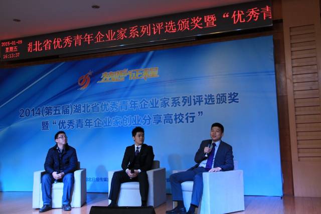 1月9日下午,由共青团湖北省委、湖北日报传媒集团共同主办的“2014(第五届)湖北省优秀青年企业家系列评选颁奖暨优秀青年企业家创业分享高校行”在华中科技大学举行,延华集团副总裁、武汉智城总经理翁志勇获评“湖北省十大优秀青年企业家”荣誉称号,并作为获奖代表与华科大学子分享了成长和创业感悟。 在颁奖仪式后,翁总还作为优秀青年企业家的代表,从延华智能“智城模式”、武汉智城发展历程,同时结合个人经历,从“平台、态度、机遇、学习”等四个方面,与在场的专家、嘉宾及华科大几百名学子分享了成长和创业感悟。翁总说道:年轻人的成长,需要选择一个好平台。从华科大毕业以来,我有幸选择了延华这样一个良好平台。延华处于蓬勃发展的智慧城市产业,发展速度迅猛,行业前景广阔,同时延华把人才视为资产来经营,拥有良好的人才发展战略和企业文化,其中对年轻人的培养有应届生“三年限期成长计划”、标准化的“导师带教制”等。在延华这个高速发展的平台上,我抓住了机遇,并成就了人生的新高度。其次,找到好的平台,还要树立正确的工作态度。工作是一个施展自己才能的舞台,重要目的是提升自己的心志。只要喜欢你的工作,再努力也不觉其苦,这种全心投入的工作态度是事业成功的最重要基石,体现了人生的价值。再次,要善于通过自身努力把握机遇、创造机遇。机遇对每个人都是均等的,但总是留给有准备的人,机遇必须建立在个人勤奋和努力之上。最后,树立终身学习的意愿和志向,把学习作为每天的工作习惯,作为一种人生追求和生活方式。翁总的发言,激发了与会嘉宾和学子的强烈共鸣,赢得热烈掌声。