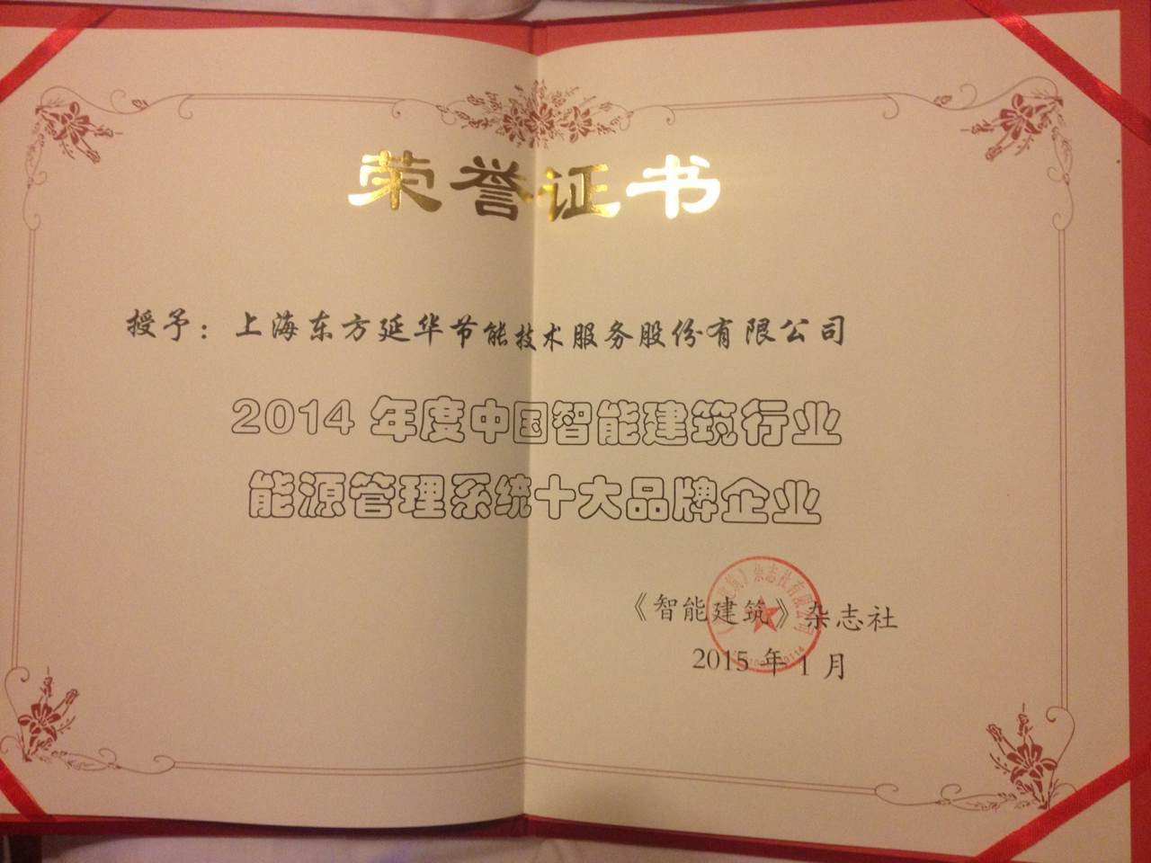 1月22日,“2014年度中国智能建筑行业产品系统品牌企业颁奖大会暨2015年中国智能建筑行业高峰论坛”在北京召开,延华集团旗下东方延华“分项计量与能耗监测管理系统”系列产品以显著的节能效益与优质的市场口碑连续三届荣摘“中国智能建筑行业能源管理系统十大品牌”称号。