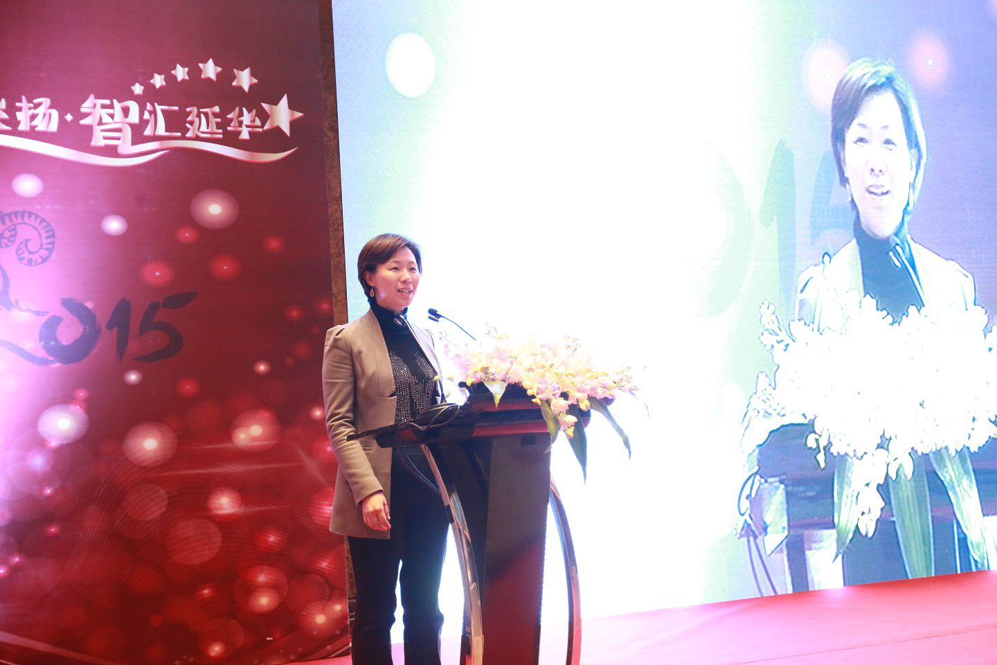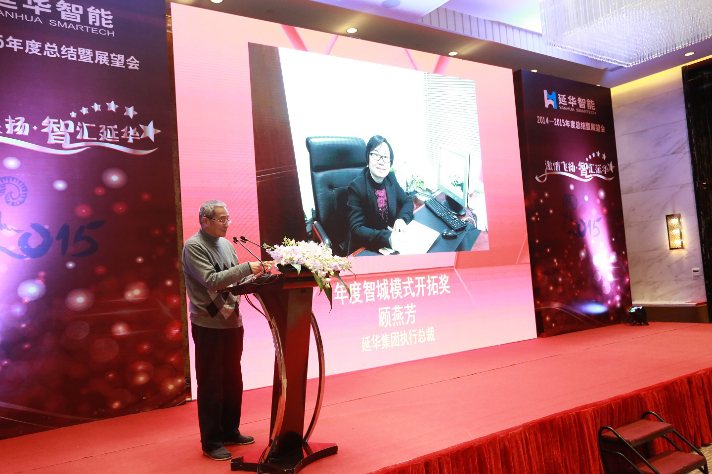 紧接着的是揭晓延华集团2014年度“双十大”评选结果这一经典项目。会上,延华集团执行总裁顾燕芳、于兵分别宣读了《延华集团2014年度十大进步》、《延华集团2014年度十大新闻》,对延华在智城模式、高端咨询、智慧节能、智慧医疗、股权激励、资本运作、管理水平、科研创新等方面的一项项跨越式发展和一件件里程碑事件进行了盘点和梳理。