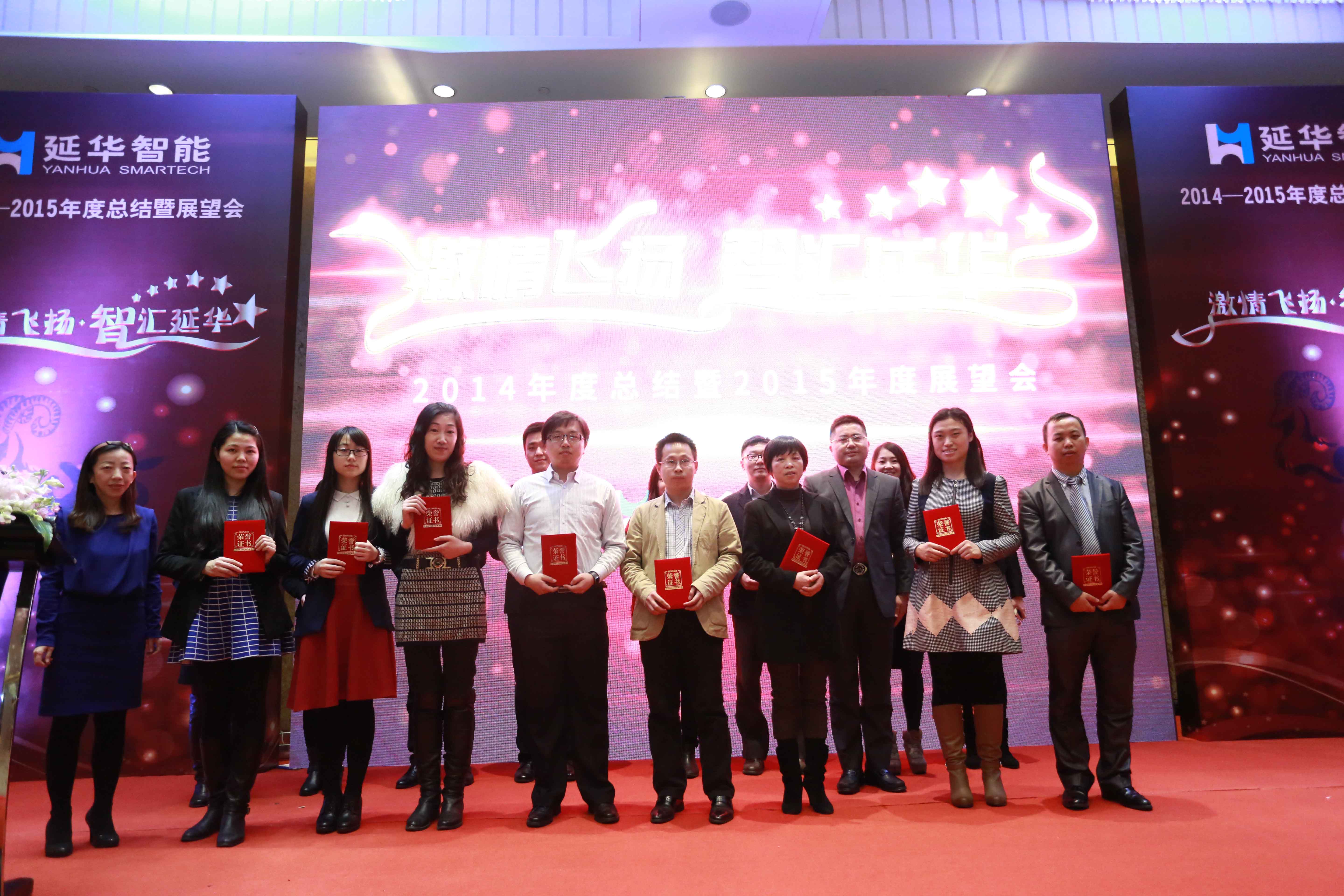 延华取得的不菲战绩,离不开延华同仁的辛勤耕耘和协同作战。而公司在迅猛发展的过程中,亦培养和涌现了一批勇挑重担的合伙人、独当一面的骨干人才和迅速成长的青年新锐。会上,陈敏恒先生和延华集团高管团队担任颁奖嘉宾对2014年度优秀合伙人、智城模式开拓奖、事业开拓奖、销售业绩奖等奖项获得者进行了表彰和点评。同时,向一批获得优秀员工、青年标兵的人员颁发了荣誉证书。