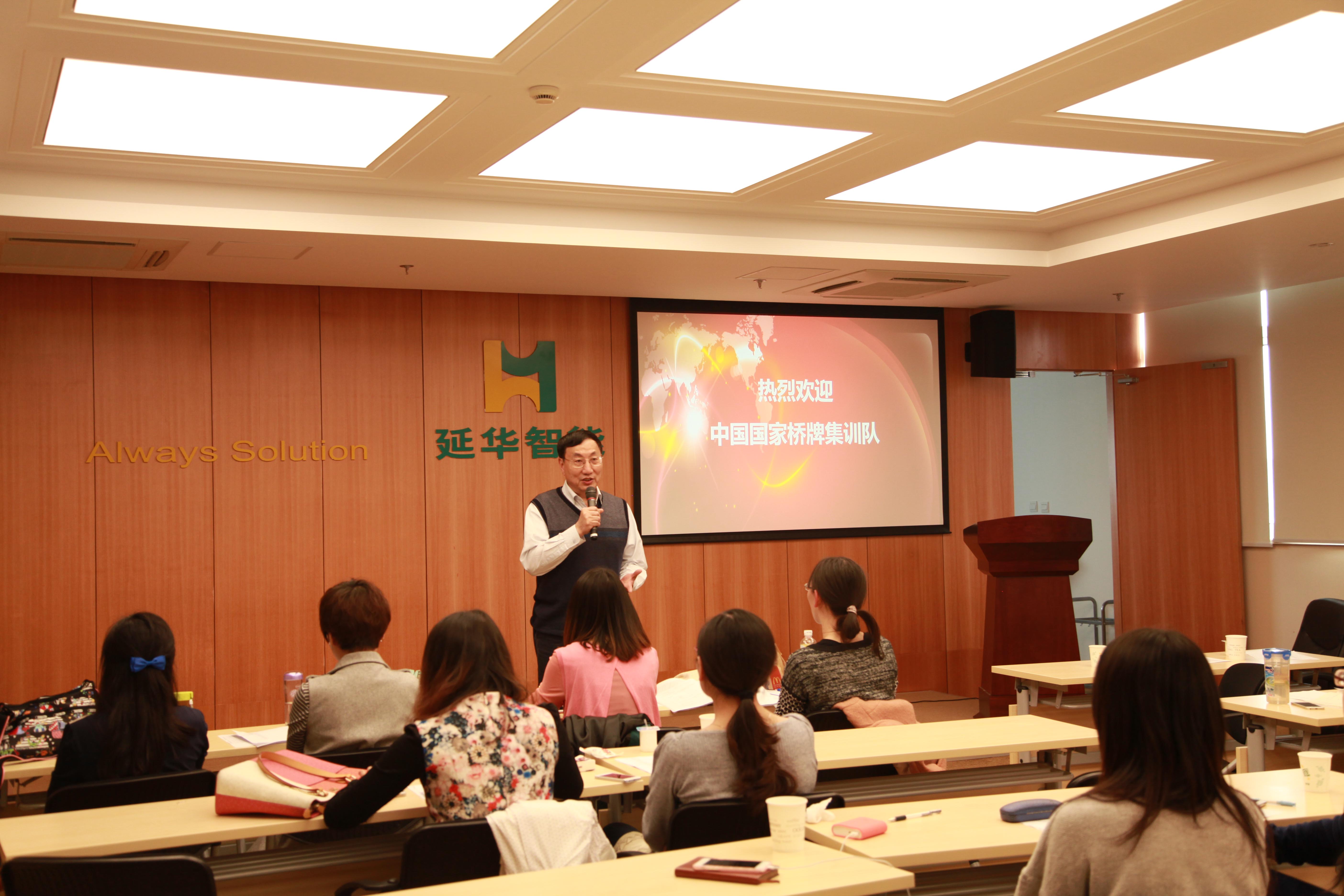 3月31日,中国国家桥牌集训队前来上海延华青年桥牌俱乐部举行集训活动。中国桥牌协会副主席、上海市桥牌协会主席邱伟昌,延华智能董事长胡黎明对桥牌青年精英们的到来表示热烈欢迎。
