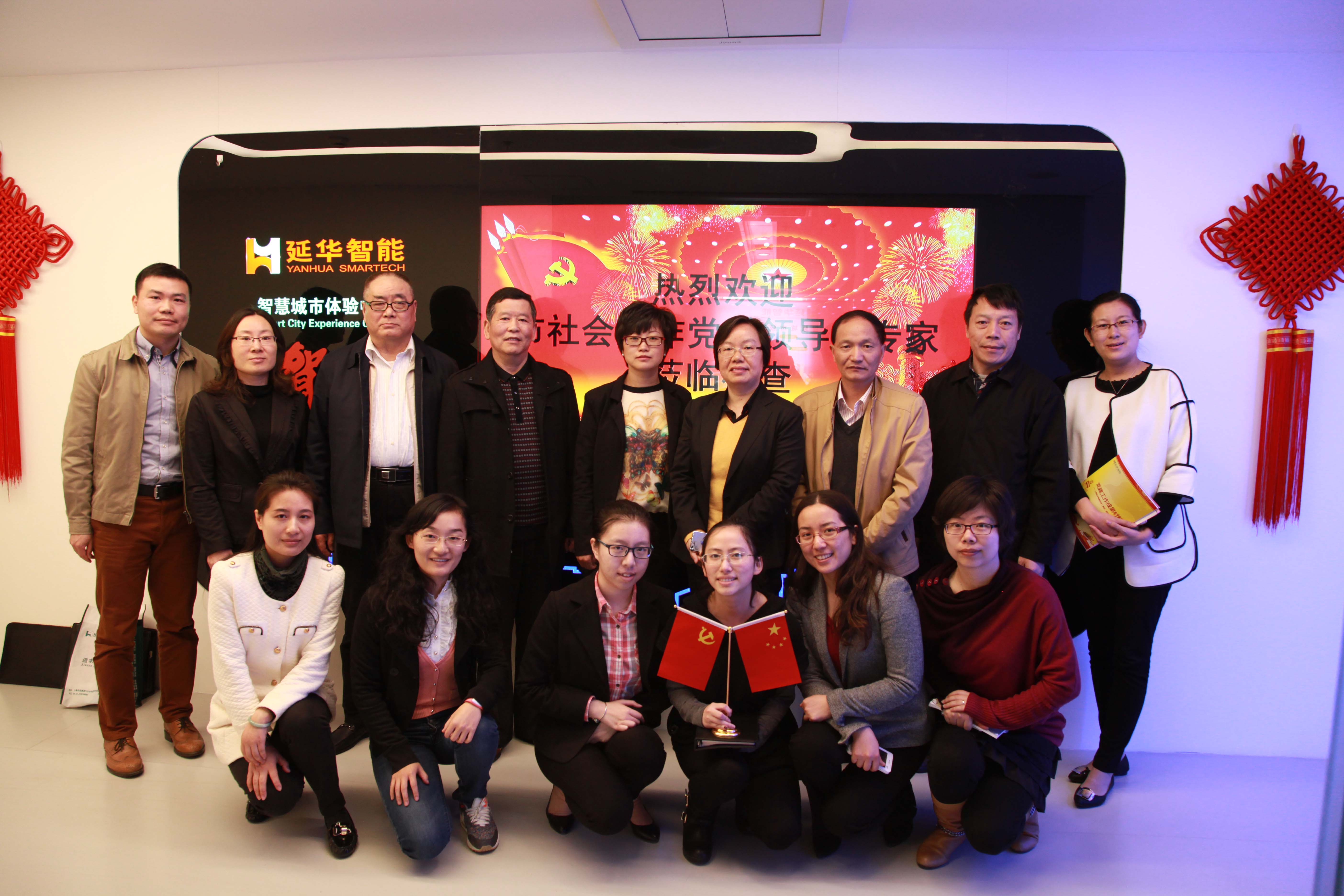 4月17日上午,上海市社会工作党委第四检查组组长童强率杜雪金、王必福一行莅临延华检查验收“上海市第二轮党建工作阵地建设示范窗口”的创建成果,普陀区委组织部副部长、社会工作党委书记严玉鹏,区科技党委委员、党建科科长汪英姿等参会。延华集团党委书记、执行总裁顾燕芳,党支部书记及党员王艳、蔡伊秋、刘金领、孙晓燕、周吉、叶晓磊对检查组的到来致以热烈欢迎。在顾总的陪同下,检查组一行实地参观了延华党建的多元化宣传阵地,包括学习交流的场地——党员活动室,宣传科普的阵地——教育长廊,文化凝聚的平台——体验中心等,观看了总结党建工作经验的延华党建专题片,翻阅了反映党建工作动态的延华党建专刊,并听取了延华关于党建示范窗口的创建成果汇报。