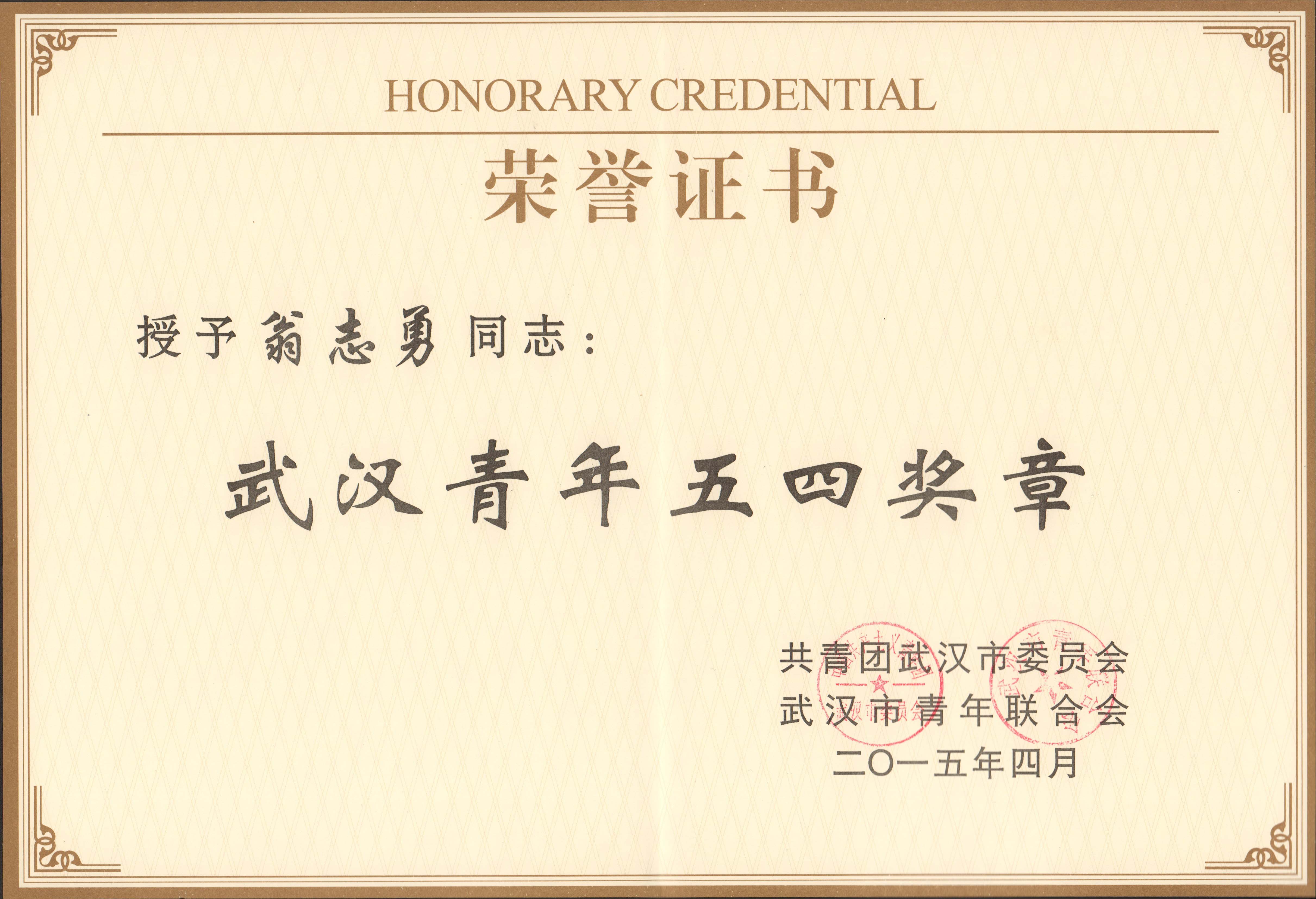 延华集团执行总裁、武汉智城总经理翁志勇荣获“武汉青年五四奖章 |