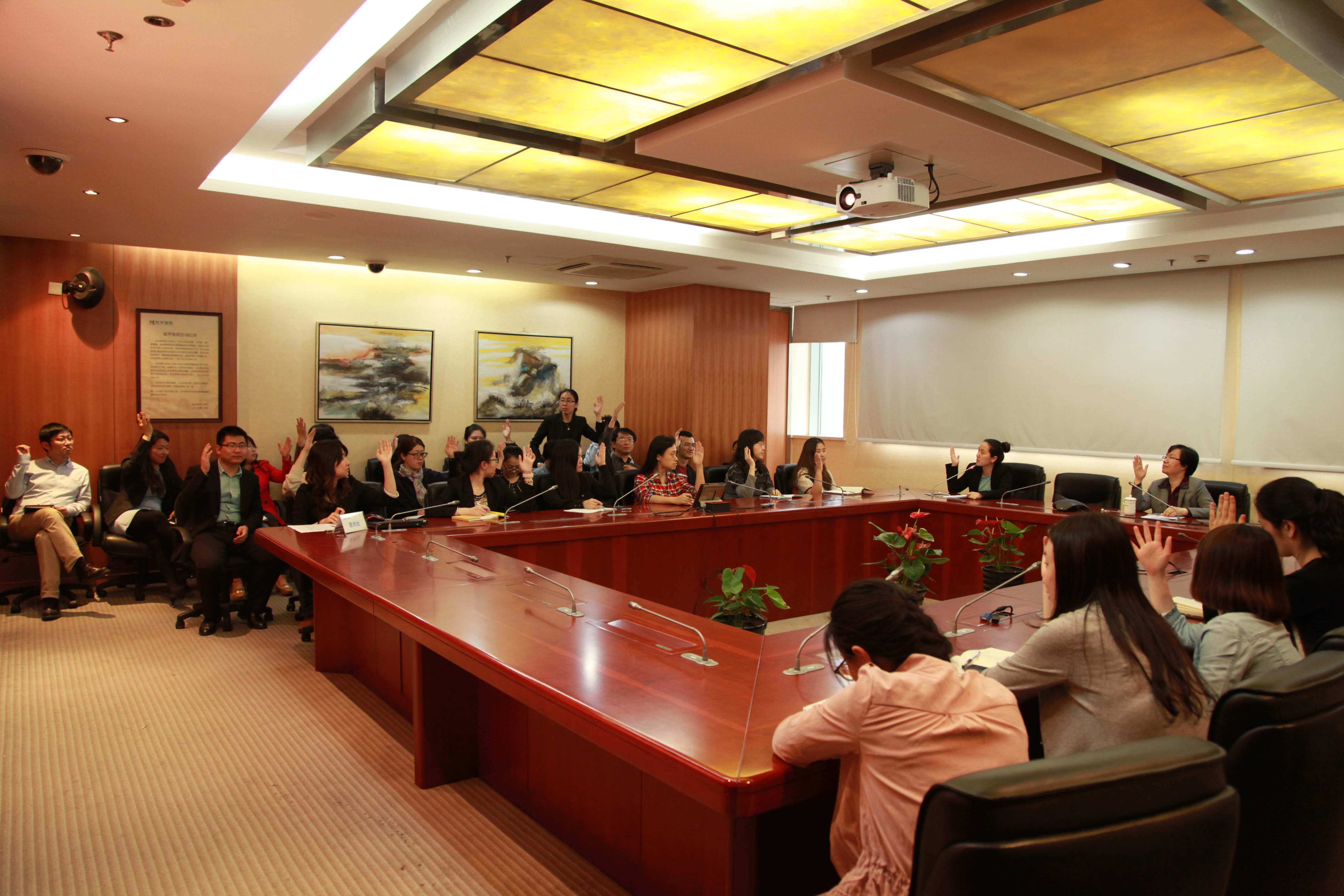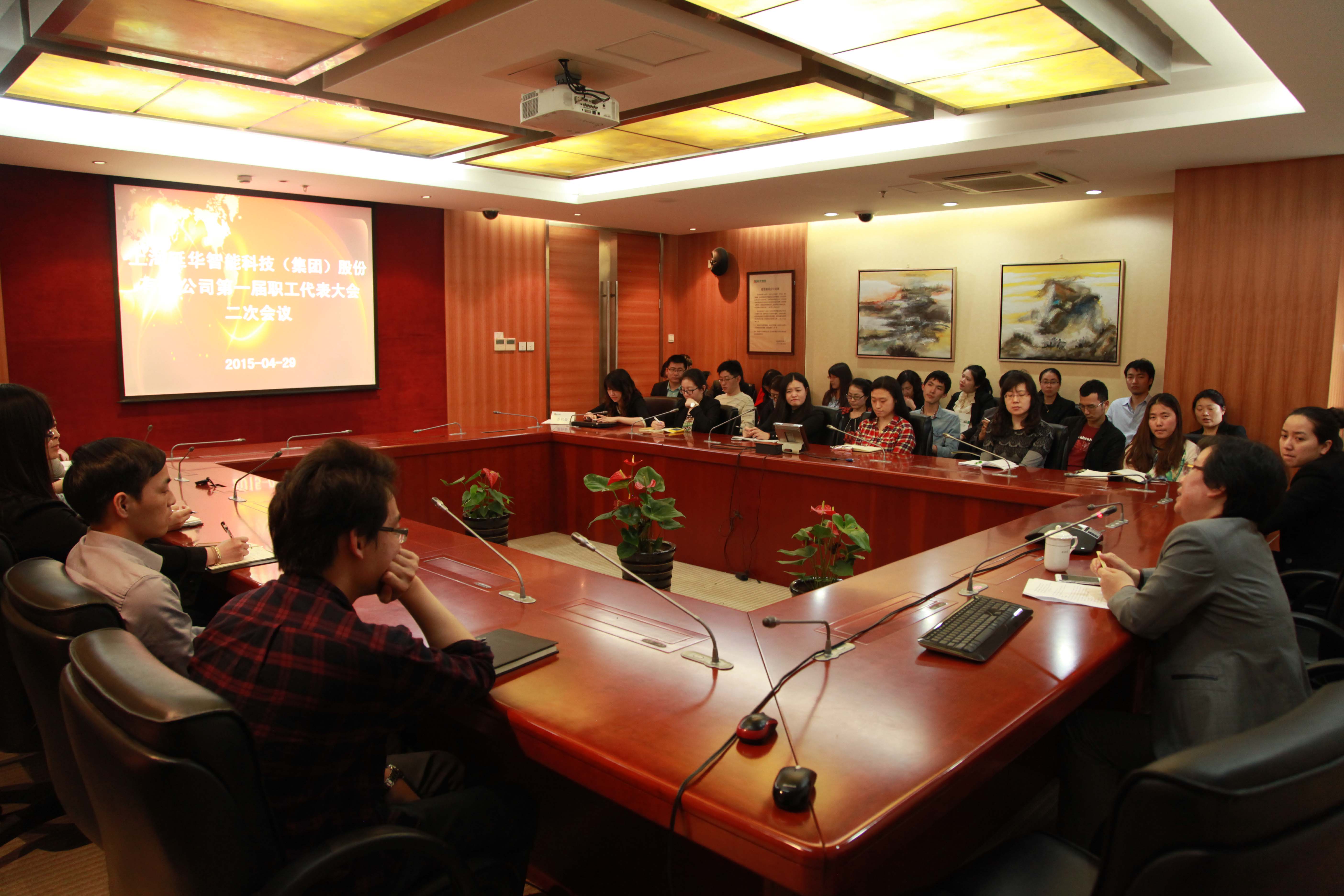 4月29日下午,“延华智能第一届职工代表大会第二次会议”在延华集团多媒体会议室顺利召开。延华集团执行总裁、党委书记顾燕芳、工会主席王艳、女工委员陈静及40名职工代表齐聚一堂,讨论并全票通过了《上海延华智能科技(集团)股份有限公司员工手册(2015版)》,以保障公司管理制度化、规范化,更好地服务于企业发展。