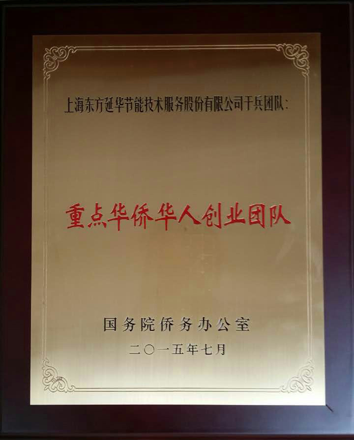 7月1日,国侨办重点华侨华人创业团队授牌仪式在湖北武汉举行,国务院侨办裘援平主任、湖北省政府甘荣坤副省长出席致辞。会上,东方延华被授予“第四批国务院侨办重点华侨华人创业团队”称号,成为上海市仅4家获评团队之一。此次获奖是继“第五届中国侨界贡献(创新团队)奖”后,东方延华团队荣获的又一国家级荣誉。 “重点华侨华人创业团队”是国务院侨办贯彻落实中央引进海外高层次人才工作有关精神,实施“海外人才为国服务计划”的一项创新性举措,旨在加大对优秀华侨华人创业团队的支持力度,鼓励和促进华侨华人团队回国创业,促进国家和地区科技、经济发展。 2008年11月,由大学教授、海归人才发起创立的上海东方延华节能技术服务股份有限公司正式成立。由于正值国家大力发展建筑节能的良好时机,创业团队牢牢把握政策导向,根据节能发展以及市场行业的需求,不断壮大队伍建设,形成了一支以博士、专家为核心,以硕士、海归为技术骨干,以本科为主要战斗力的专业化、国际化、具有执行力的人才团队。 同时,根据业务发展需求,东方延华立足自主创新,不断开发适应市场需求和客户需求的新产品、新技术,深入挖掘建筑节能潜力,探索拓展智慧节能市场,承接并实施承接了数百个国内外综合绿色节能项目,并获得多项国家及地方认证与荣誉;牵头开展了多个国家省部级、市级科研项目;多次参与行业标准文本的制定;通过自主研发,获得了10余项自主知识产权的产品与技术,大力推动我国智慧城市建设与运营工作。 在 “十三五”规划编制工作新闻发布会上,国家发改委强调,“十三五”规划在资源环境、生态建设方面的力度将进一步加大,不可能弱化,更不可能“放水”,充分展现了我国政府贯彻落实节能减排政策,为人民创造美好绿色生活的坚定信念与决心。 如今,东方延华正站在我国大力推行节能减排行动的风口上,此次获颁国家级奖项,是国务院侨办及业内各界表彰公司作为新侨归国创业的代表企业之一,在绿色节能环保领域的科技创新和对侨界、社会的经济发展作出的贡献。东方延华将以此为动力,把握机遇,开拓创新,充分发挥示范引领作用,在祖国怀抱中进一步实现自身价值,为实现中华民族伟大复兴的绿色“中国梦”作出更大贡献! 授牌仪式结束后,东方延华还受邀参加了国务院侨办和湖北省人民政府暨武汉市人民政府共同主办的“2015华侨华人创业发展洽谈会”(简称“华创会”),与中部六省,及上海、江苏、重庆等11个长江经济带沿线省市领导、国内外优秀企业、高端人才进行深入交流,探索合作模式,以实现双向互动、互利共赢,促进共同发展。 据悉,当天中国新闻社还对延华集团执行总裁、东方延华总经理于兵博士进行了《平台上创业 、风口上创新》的专访。