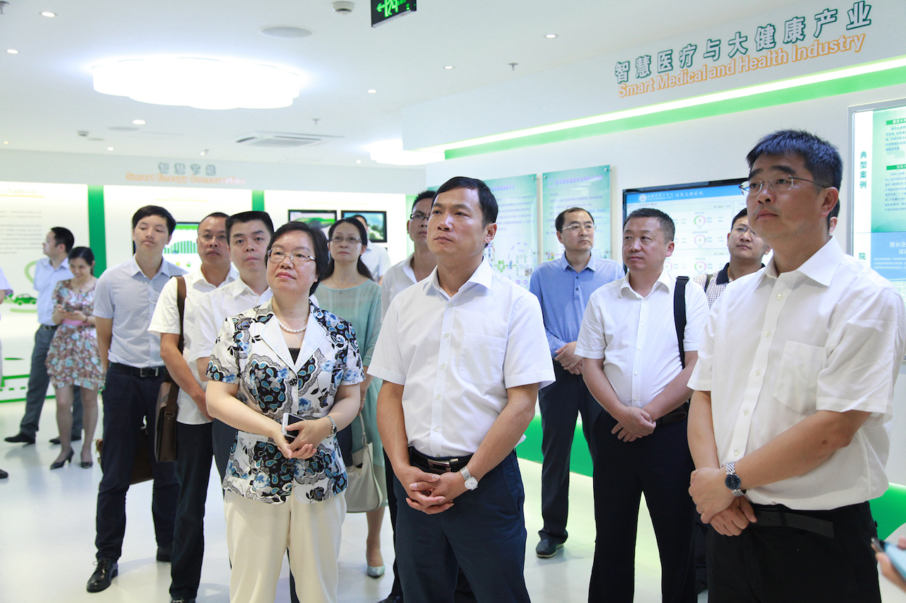 即便“灿鸿”过境、风雨交加,也阻挡不了六盘水来沪考察延华集团的智慧之旅。7月12日上午,为深入了解延华集团的发展情况,学习上海智慧城市建设的优秀经验,高起点、高标准做好智慧城市顶层设计,促进六盘水智慧城市建设,中共六盘水市委副书记魏雄军,市委常委、市人民政府副市长周宏文率市委副秘书长王维伦,市城投公司董事长王晓春以及市住房城乡建设局、市发展改革委、市规划局、市环保局、市卫计委等各委办主要负责人一行莅临延华集团考察交流。延华集团执行总裁顾燕芳、王东伟、金震,大健康事业部总经理周玲玲等对他们的到来表示热烈欢迎,并陪同魏副书记一行参观了延华集团智慧城市体验中心,拉开了本次考察的序幕。