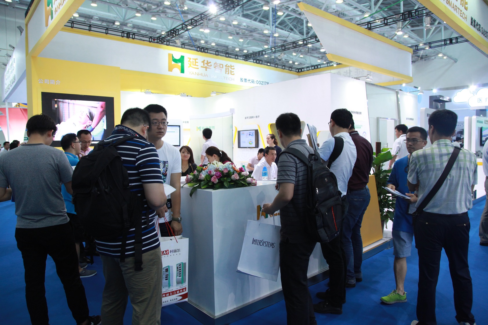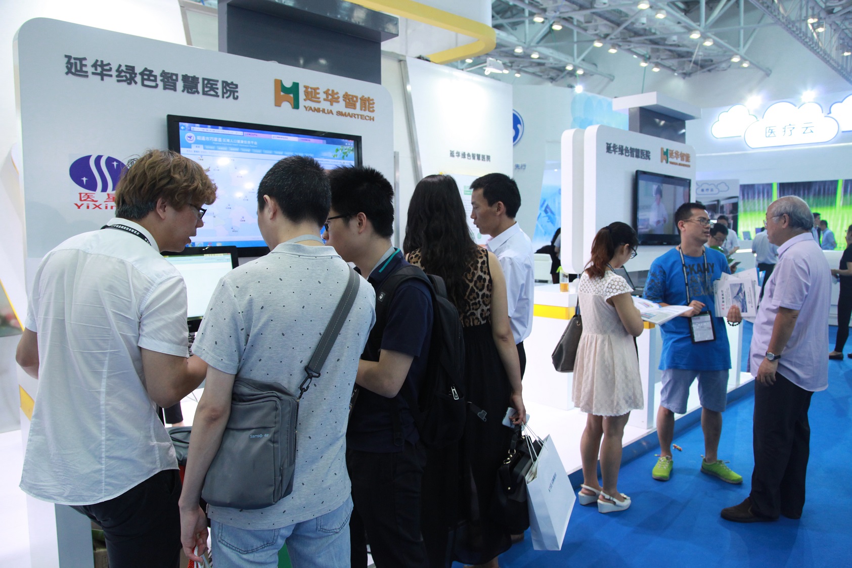 展台处,延华智能等参展企业的智慧医疗创新解决方案应接不暇。