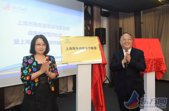 近日,全国首个服务到家合作联盟——上海服务到家合作联盟在沪揭牌成立。上海市商务委党组书记、主任尚玉英,市商务委副主任吴星宝、市商务委巡视员顾嘉禾,东方网党委书记、董事长何继良,东方网总裁、总编辑徐世平等出席成立仪式。会上,延华集团当选为联盟副理事长单位,延华集团执行总裁王东伟代表集团出席揭牌仪式。