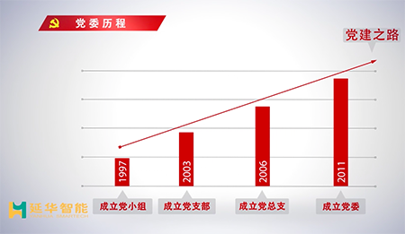 党组织全覆盖 延华集团党委组建于2011年,现设一个党委、10个党支部、党员共90人,党组织覆盖率达100%。公司党委组织班子与企业决策层、管理层实行“双向进入、交叉任职”,将“党员发展为骨干、骨干培养成党员”,集团各业务条线重要核心骨干纷纷加入党员队伍,使有业务的地方就有党员干部发挥模范作用。