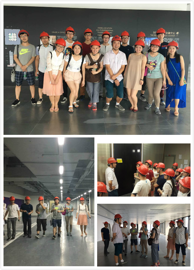 从未来过工程项目一线的小伙伴们对该环节好奇满满、兴致盎然。头顶烈日,学员们到达上海外滩国际金融服务中心项目,项目经理翟凯带领众人参观了项目样板层,以及正在建设中的地下停车场、地下商场、地下安防控制中心,并为大家作了技术与设计等方面的专业讲解。